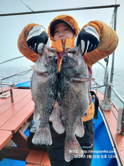 ◇ 장고항 선상낚시 배낚시 바다낚시 낚시배 서해 동산피싱 "동산호" 우럭낚시 조황날짜 : 2월27일 (금요일)날씨 : 맑음물때 : 2물 성적 : 우럭 노래미 볼락 저수온기